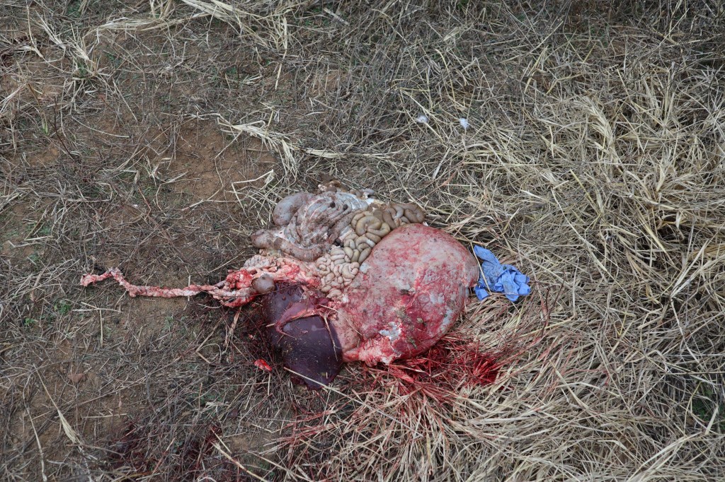 I did come across a gut pile, likely from the night before. It was surrounded by a massive swarm of vultures. This was both encouraging and discouraging. It made me feel like the decision to be in the location I chose was not completely unfounded. But at the same time, also wondered if the deer in the area would had cleared out after a such a recent kill. I was also disappointed to see that the hunter had left trash behind with the gut pile. I picked it up and continued on my way.